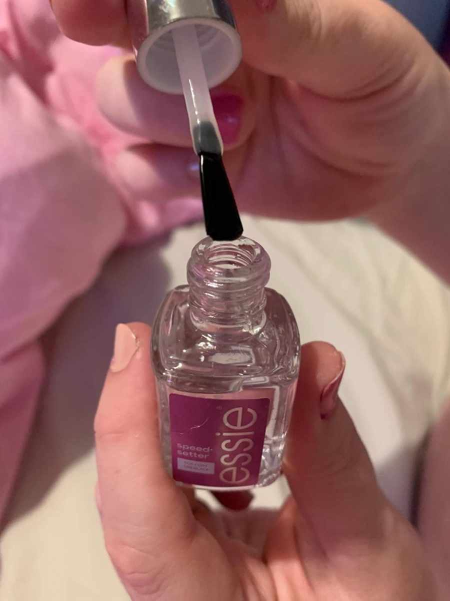 I got this for my partner along with two Essie nail polishes, she always has trouble with nail polish on her fingernails, her nails are thin and she works a very hands-on job meaning that most polishes last less than a day when she is working. Applying this top coat on top of the Essie nail polish was a match made in heaven, the consistency of the topcoat is great and applied nicely on top of the nail polish.