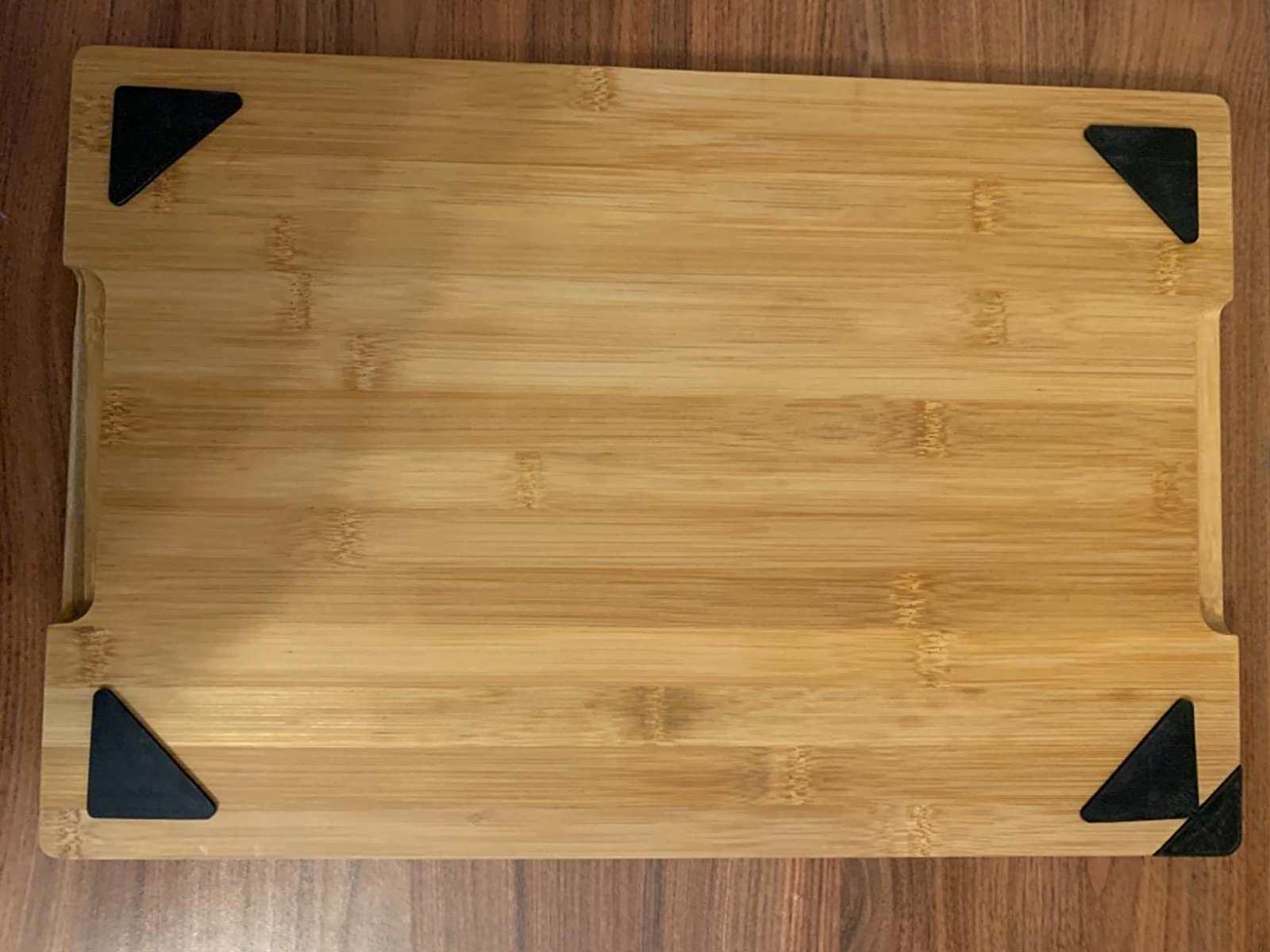 We have a small collection of chopping boards and we have found that wooden ones are our favourite type and this one provides all of the benefits of a wooden board with some extra features which elevate it and also the bamboo material gives it a really nice weight, it is heavy enough to hold in place and is greatly helped by having the rubber feet on the bottom and the bamboo also means that it is lighter than our wooden ones of the same size.