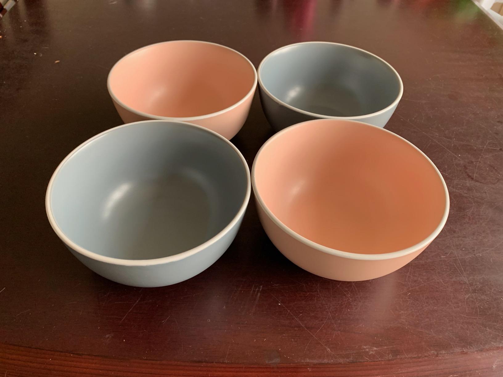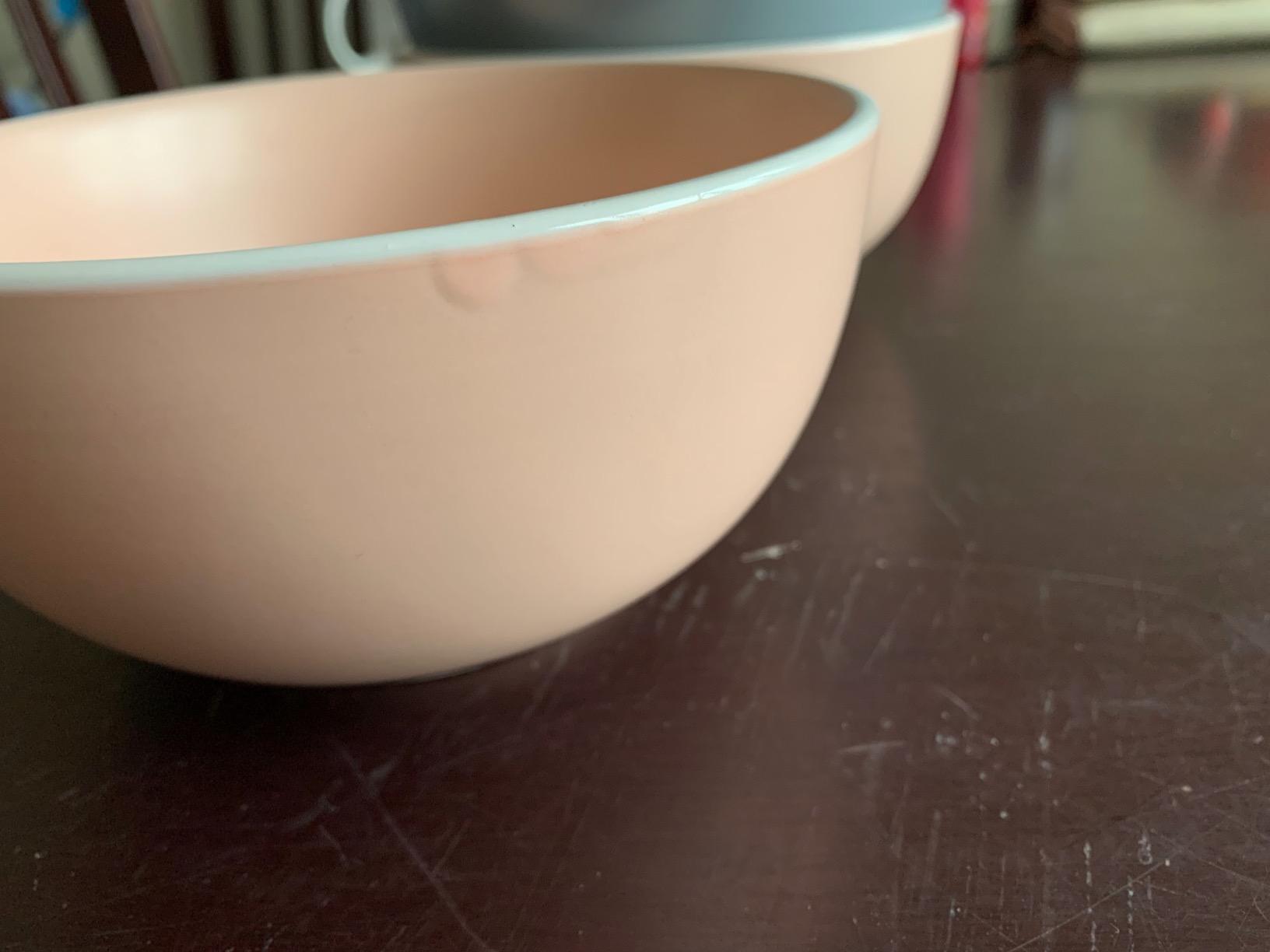 The only issue we have found with them is that there are a few ‘bubbles’ underneath the finish at the top of the bowls. I’ve shown it in one of the pictures I have attached, it is not very noticeable in the picture, but there are a few bubbles on 3 of the 4 bowls. I’m not sure if this has happened since we have had them or they came like it, maybe this has happened in the dishwasher, but they claim to be dishwasher safe