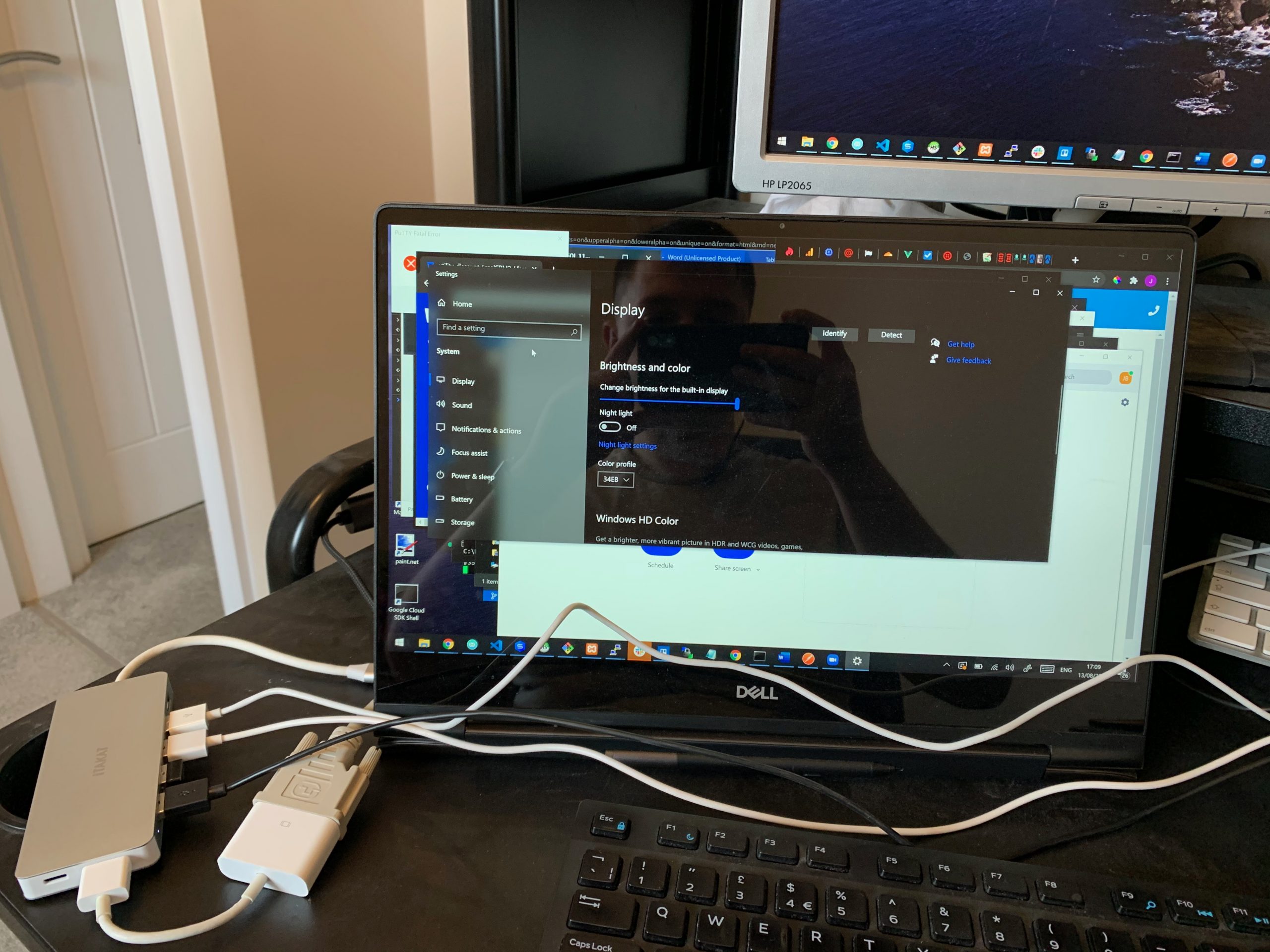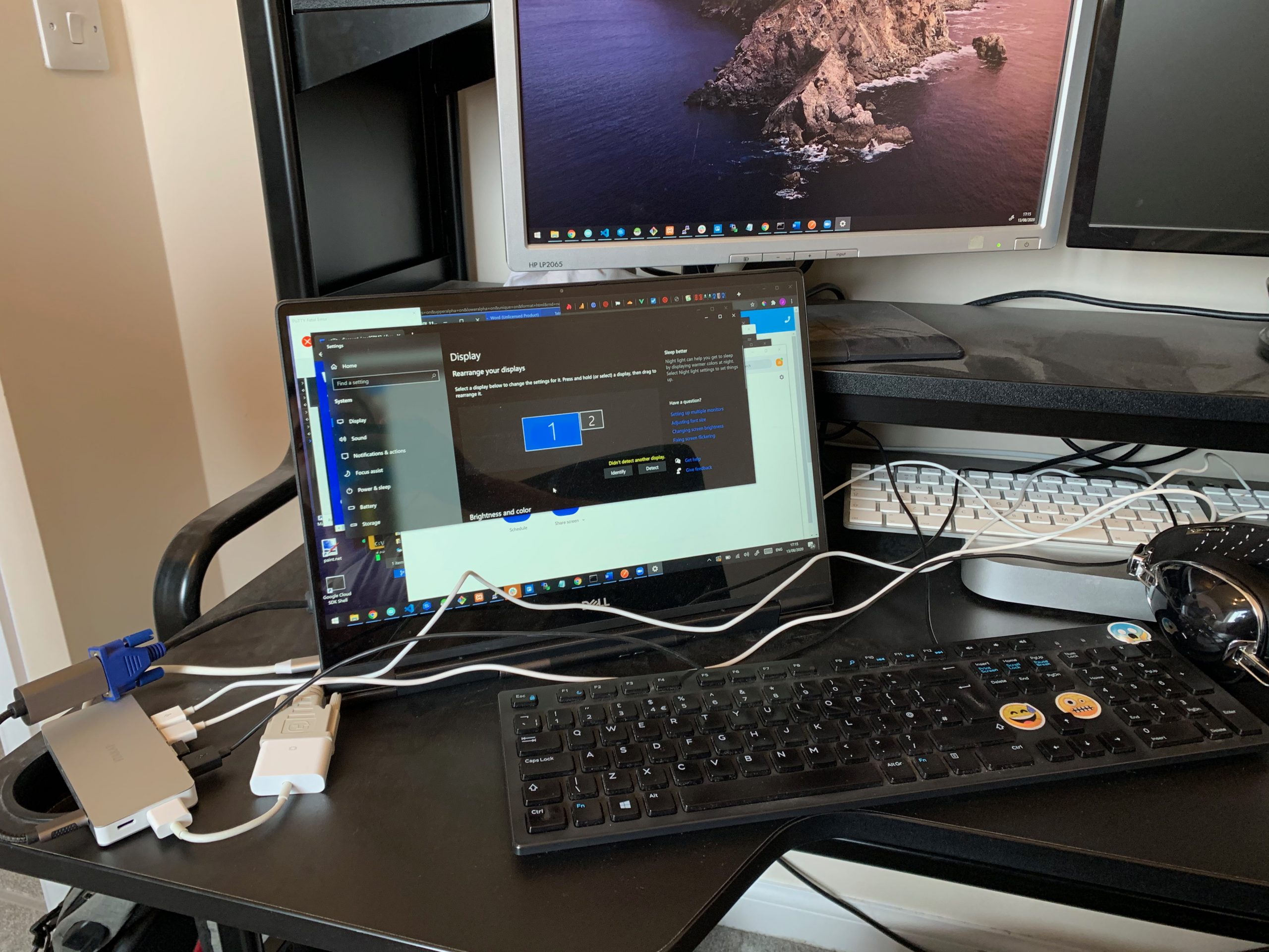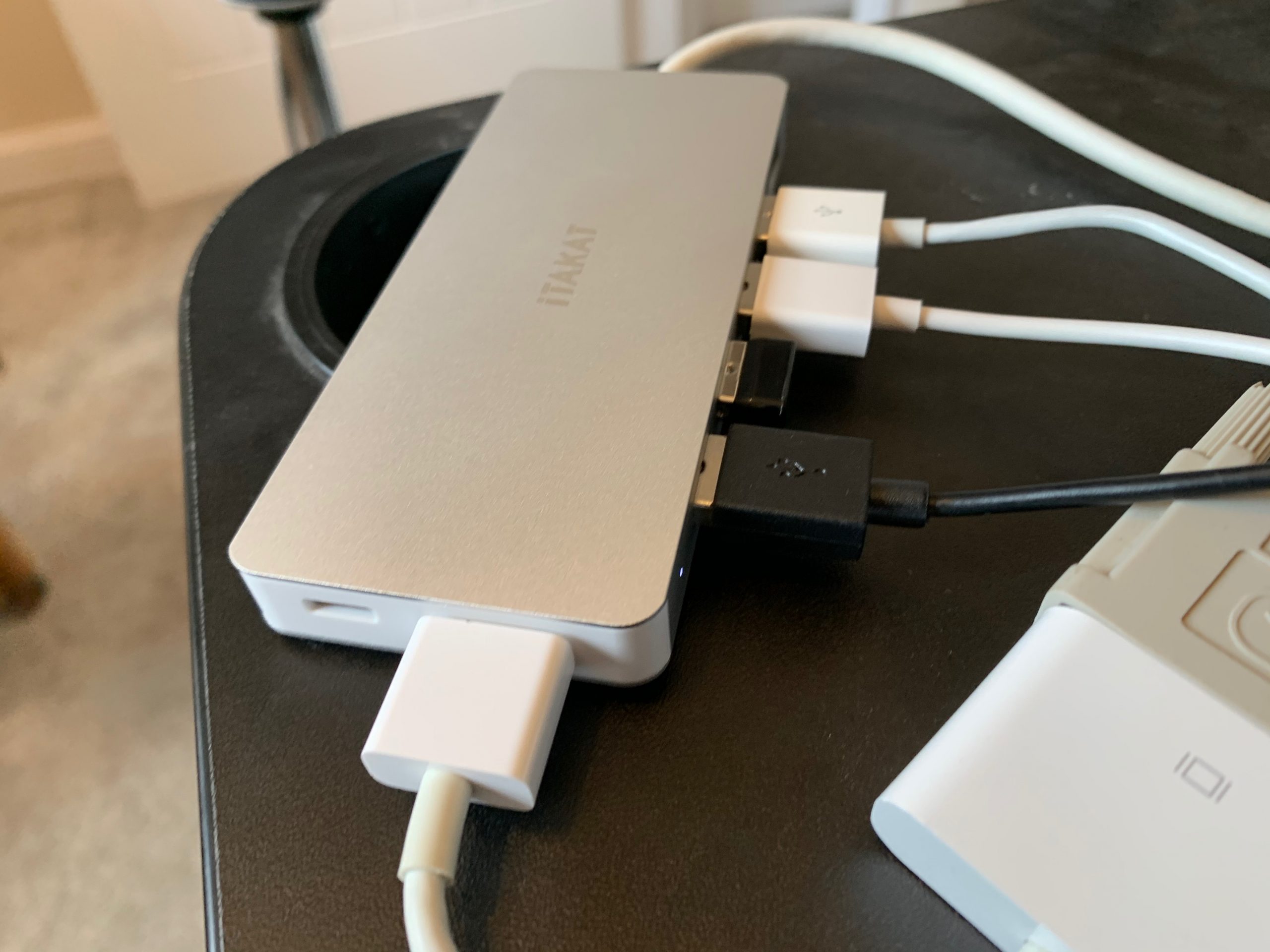 One aspect that I wanted to test out with the video output, as you can tell from the images included my monitors are a little dated but the laptop is very new with only the latest ports. The laptop only has USB-C and HDMI and the monitors take DVI and VGA, as this has been a sore spot for a while I have plenty of adapters and you can see I connected a HDMI to DVI adapter to the hub and DVI cable then to the one external monitor, that worked fine. But for the VGA Monitor, I have a USB-C to VGA adapter which I tried in the USB-C port of the hub, but this did not work, I believe this is probably because that adapter requires thunderbolt, but I cannot be sure.