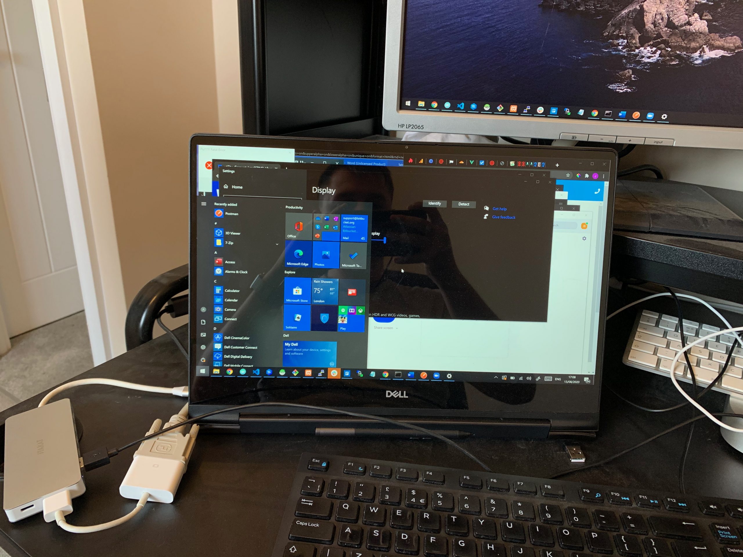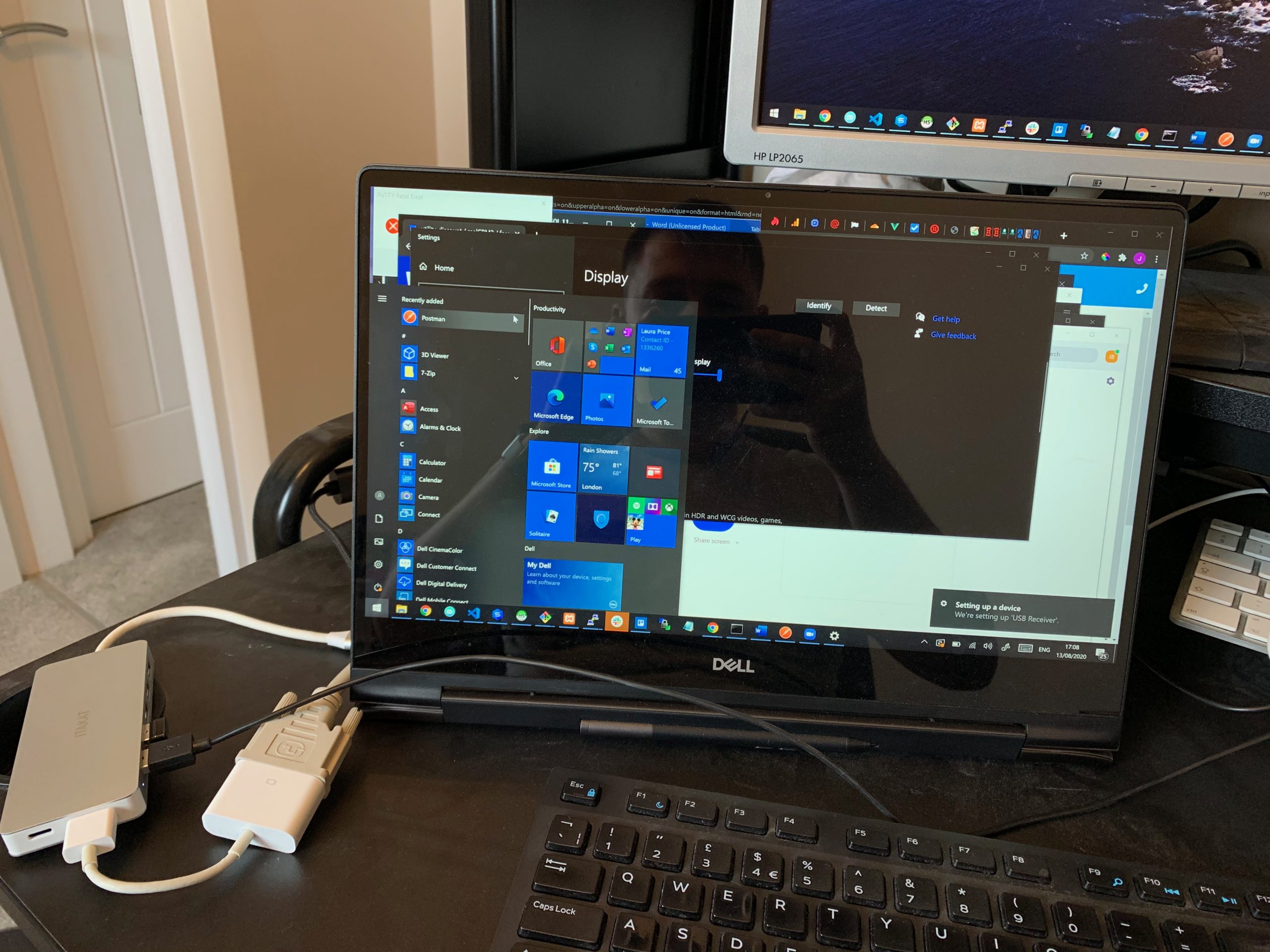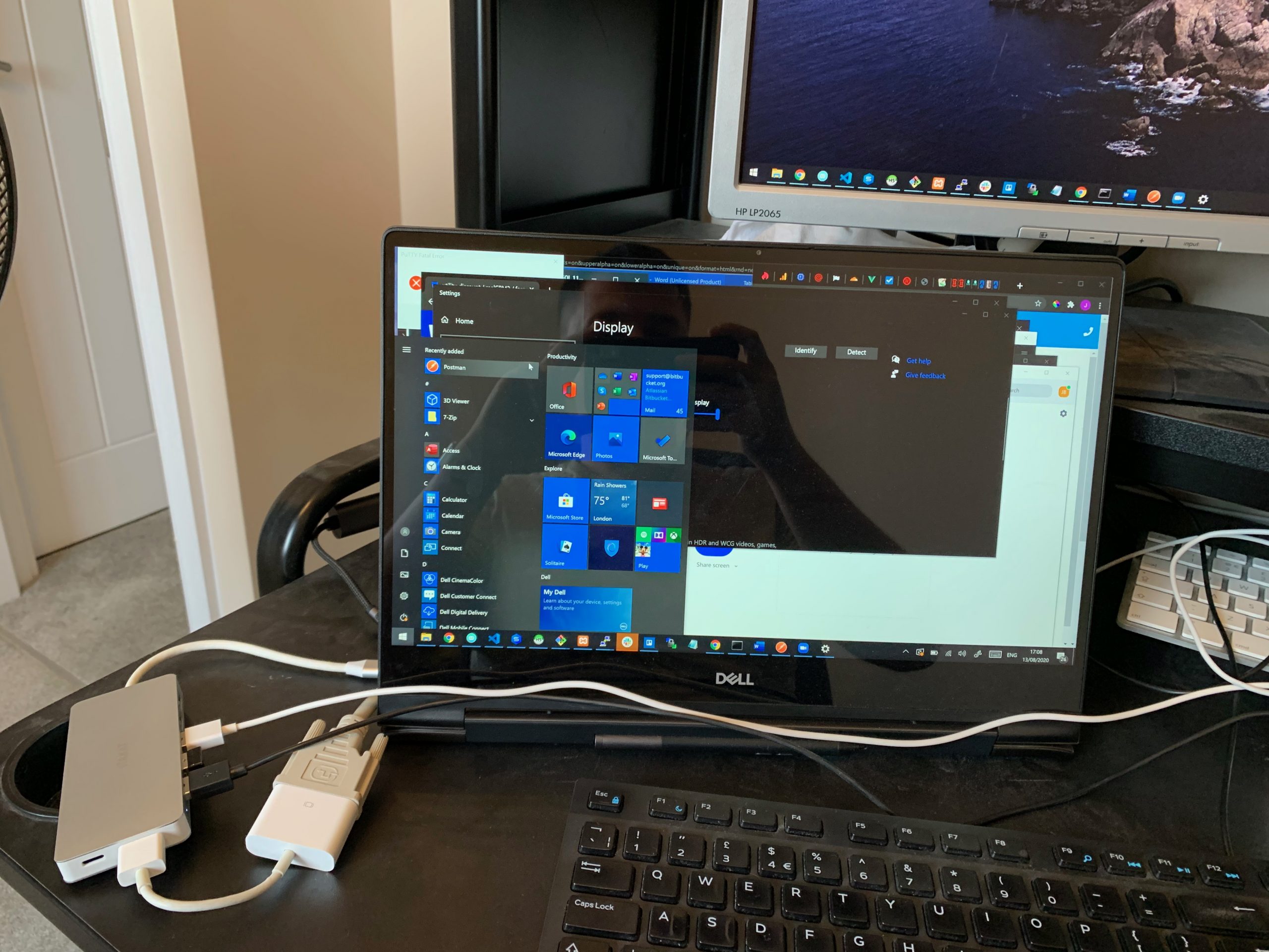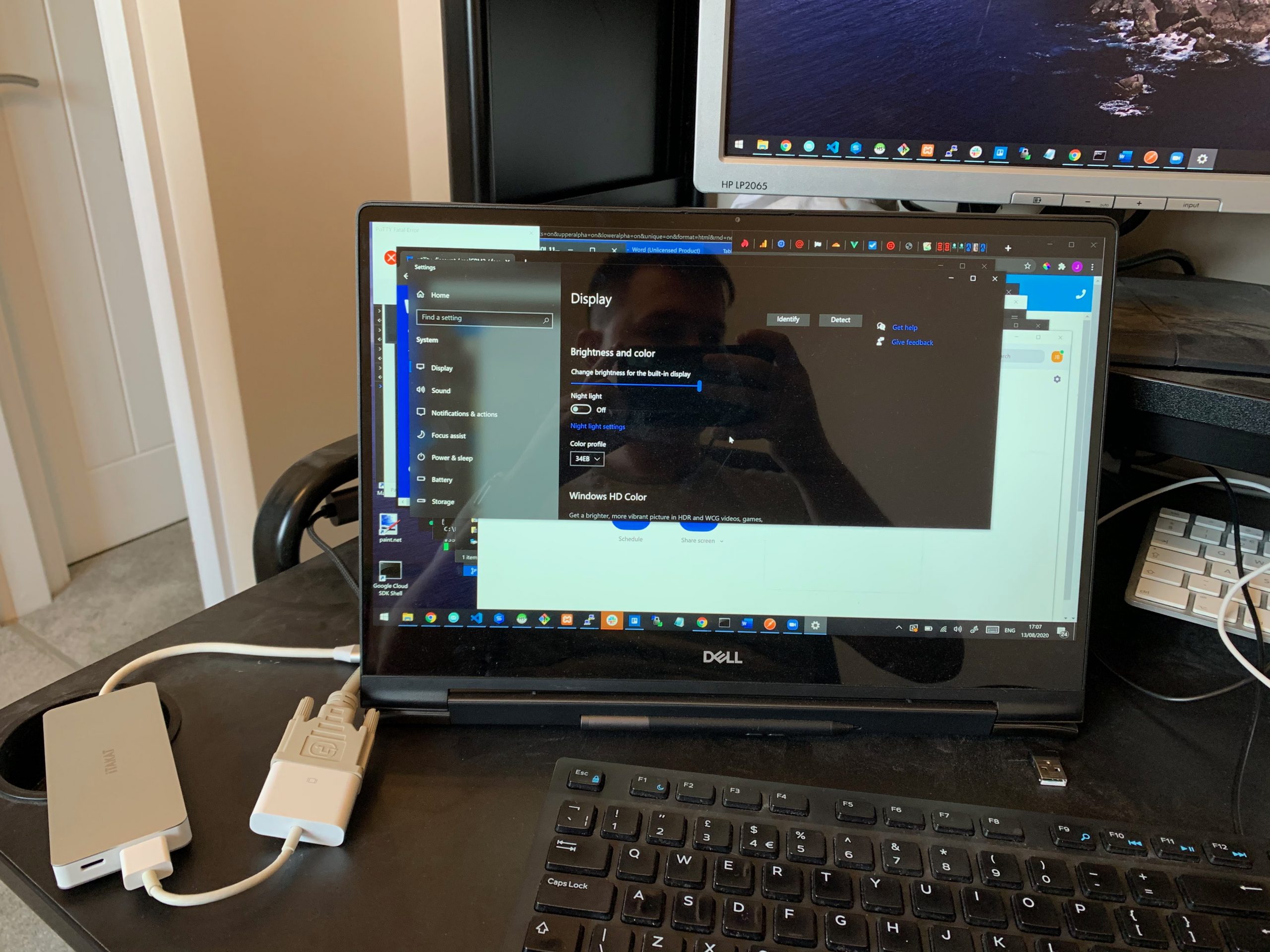 One aspect that I wanted to test out with the video output, as you can tell from the images included my monitors are a little dated but the laptop is very new with only the latest ports. The laptop only has USB-C and HDMI and the monitors take DVI and VGA, as this has been a sore spot for a while I have plenty of adapters and you can see I connected a HDMI to DVI adapter to the hub and DVI cable then to the one external monitor, that worked fine. But for the VGA Monitor, I have a USB-C to VGA adapter which I tried in the USB-C port of the hub, but this did not work, I believe this is probably because that adapter requires thunderbolt, but I cannot be sure.