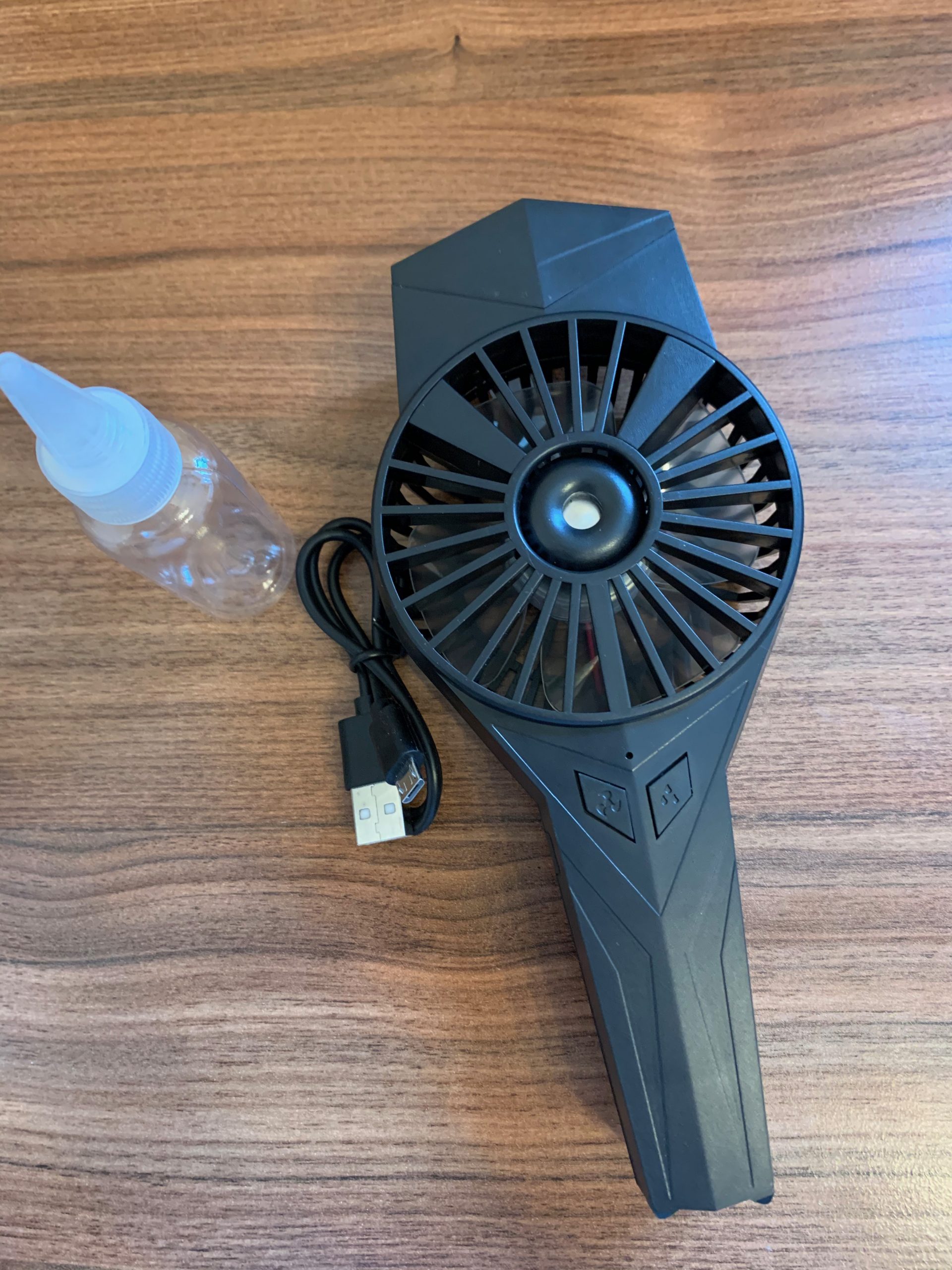 The inclusion of the small bottle to refill the water reservoir is a nice touch and does make filling the tank very easy, and if you are out and about allows you to carry extra water capacity. The fan is very loud particularly on the higher settings, fortunately for me, I intend to use this at my desk with headphones on so I can drown out the noise, but this might impact your use