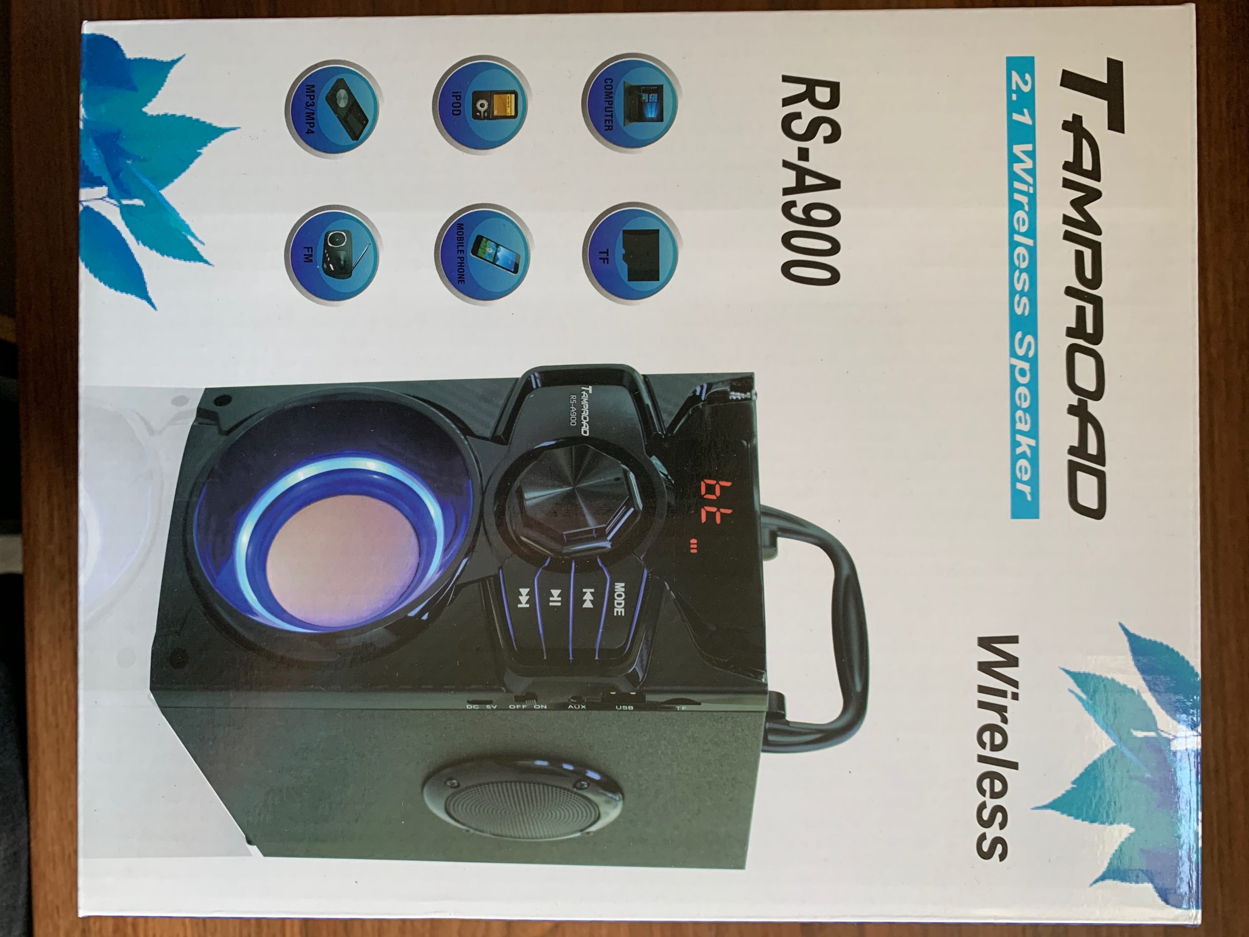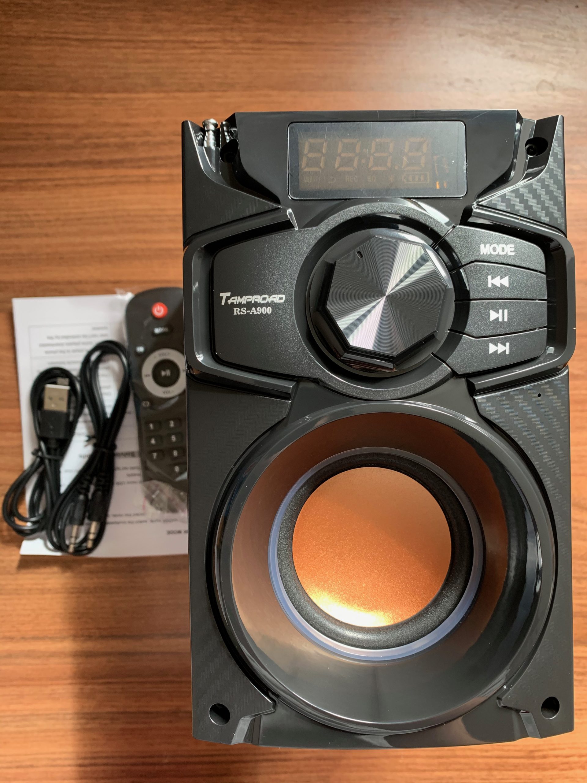 So upon receiving this speaker, the first thing that struck me was the wood design, I think it is actually made of wood but I cannot be sure, it is a very bold look and I was not expecting it to quite be so much from the product images on the listing. I think I much prefer the design on the front of the speaker, it is a strange combination of style from different decades.