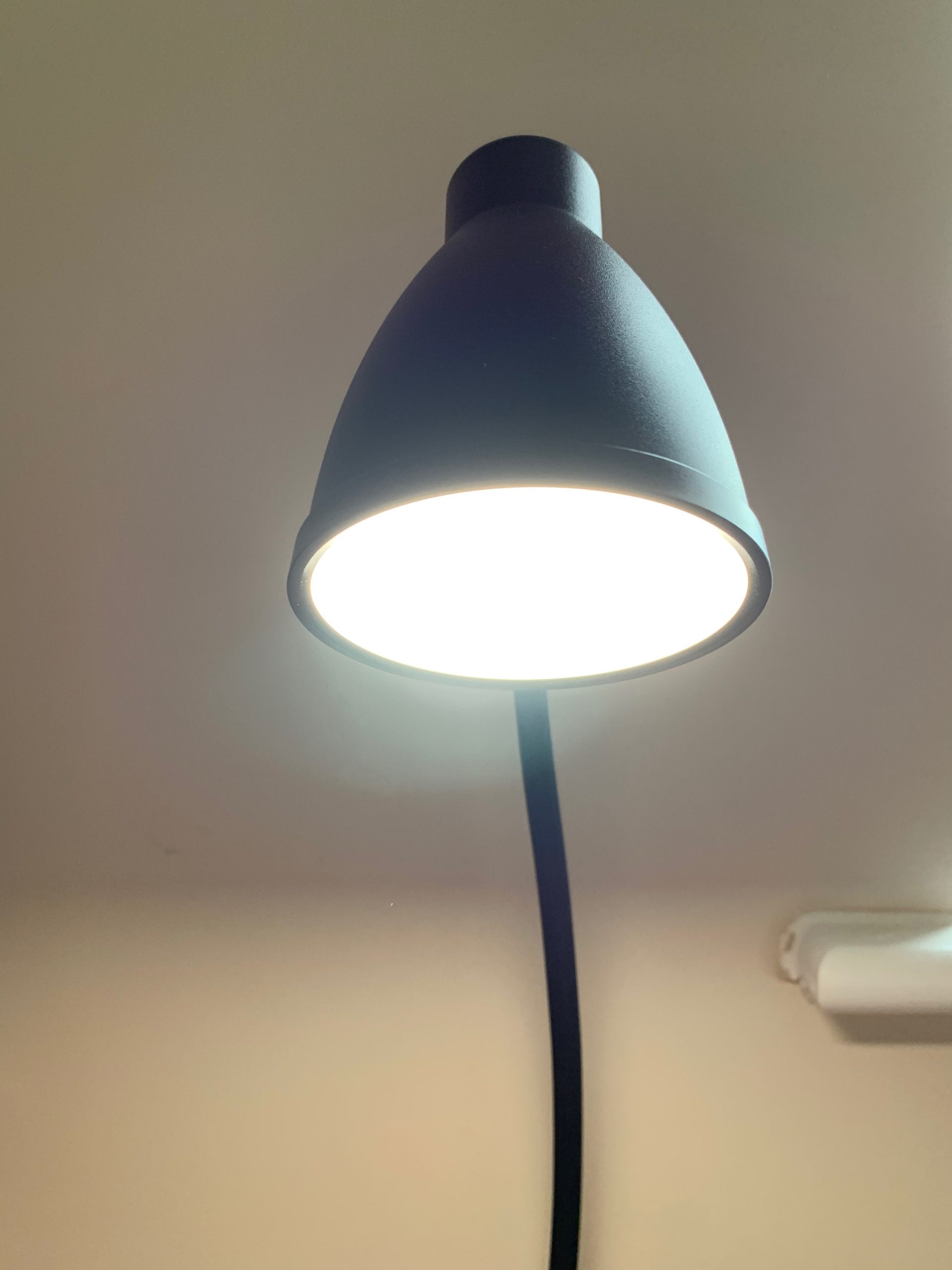 When it comes to using the lamp, it does use a USB port for power and a wall port adaptor is not provided so if you intend to plug it into a wall socket make sure you have an adaptor ready. The control unit is built into the cable and I am sure in most scenarios this is fine for I’ve got the cable tucked behind the desk the lamp is clipped to and ideally I would have the cable in a cable tiny cage under the desk but as I need to access the controls I have had to leave it loose and I need to reach under the desk to control the lamp, and unfortunately if the lamp is on then the power turned off at the switch and then back on then the lamp does not automatically come back on, if this was the case then I would have put a smart socket there to control the power.