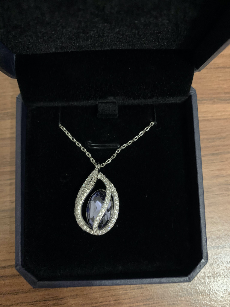 My partners birthday is coming up and I saw this was available, so I thought it was worth a shot for a nice gift for her. It came in a nice blue gift box with fancy gold detailing on the top giving it a more expensive look than it might actually be. On the inside the necklace is presented on a nice insert which positions the necklace nicely, I would recommend for anyone giving this as a gift, open it up beforehand and adjust the way it sits, when mine arrived it was not sat in a nice way to be presented, but it is easy to adjust and now looks like the photo I have attached.